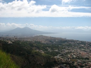 The picture to the left has Mt. Vesuvius in the background. That’s the volcano that wiped out Pompeii in 70 A.D.